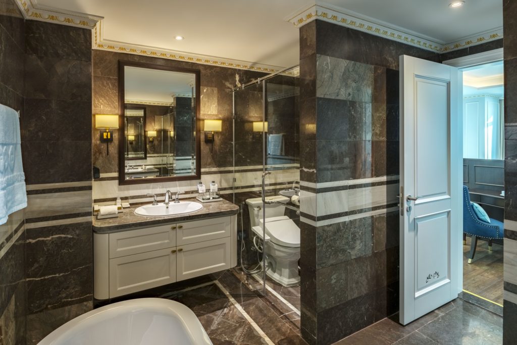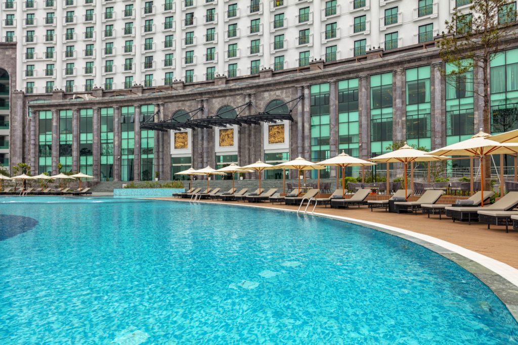 • Hạng mục: Nội thất (Lát đại sảnh, thang máy, sàn phòng khách sạn) và Ngoại thất (Phào cột, Tường bể bơi, Hạ tầng cảnh quan)